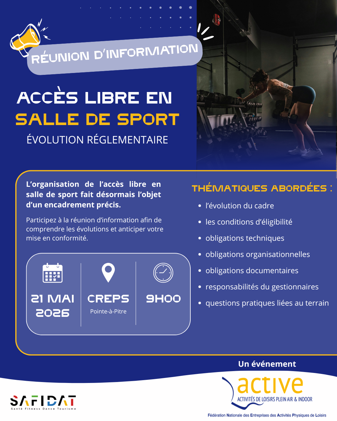 CREPS Antilles Guyane Rte des Abymes , AbymesRéunion infos Accès Libre Guadeloupe Normal 0 false 21 false false false FR X-NONE HE /* Style Definitions */ table.MsoNormalTable {mso-style-name:"Tableau Normal"; mso-tstyle-rowband-size:0; mso-tstyle-colband-size:0; mso-style-noshow:yes; mso-style-priority:99; mso-style-parent:""; mso-padding-alt:0cm 5.4pt 0cm 5.4pt; mso-para-margin:0cm; mso-pagination:none; text-autospace:none; font-size:11.0pt; font-family:"Calibri",sans-serif; mso-ascii-font-family:Calibri; mso-ascii-theme-font:minor-latin; mso-hansi-font-family:Calibri; mso-hansi-theme-font:minor-latin; mso-bidi-font-family:Arial; mso-bidi-theme-font:minor-bidi; mso-ansi-language:EN-US; mso-fareast-language:EN-US;} Dans un contexte d’évolution du cadre réglementaire applicable aux salles de…